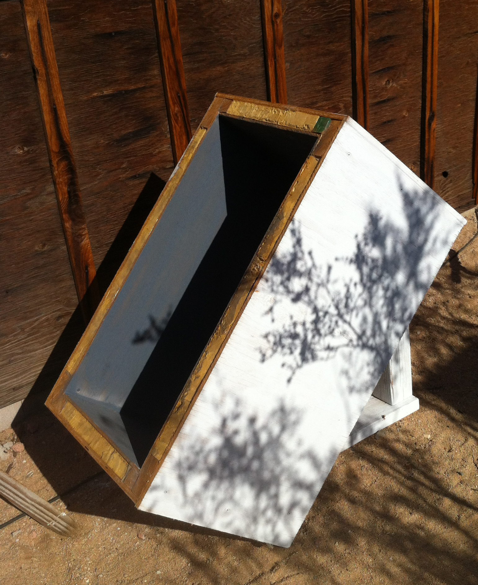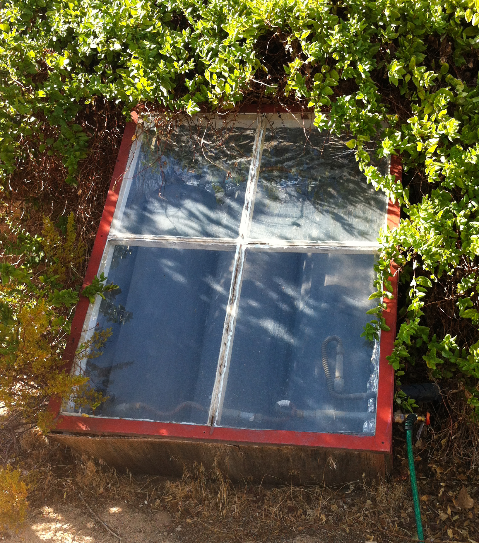 I’m building a solar batch water heater for my trailer. Where did I get that idea? My dad. He’s built two: