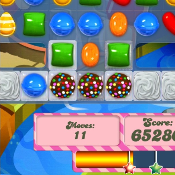 A couple of weeks ago, a coworker introduced me to Candy Crush, a single-player game where you try to line up images of candy into groups of three or more, which makes them disappear and more candy pours in from the top. It looks like this: