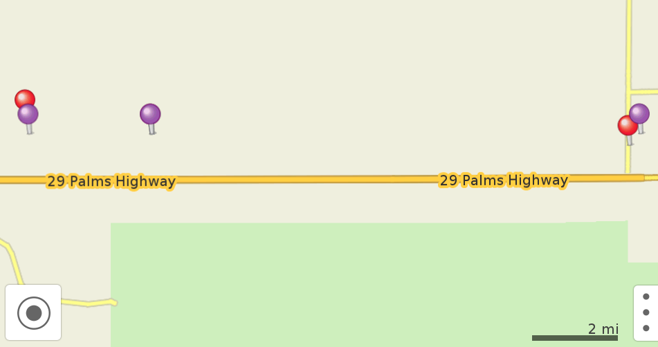 The purple dots are microconfluences. From left to right, Joshua Tree, Sunfair, Twentynine Palms.