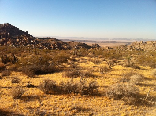 Looking west towards the spot. You can see Pipe’s Canyon, the gap in the mesa in the distance, and the San Bernardino Mountains beyond that, with San Gorgonio. Big Bear and Big Bear Lake are up in those mountains.